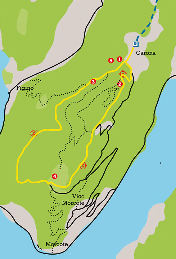 Questo percorso si snoda attorno al monte Arbostora partendo da Carona al Parco San Grato, lungo dei bei sentieri.