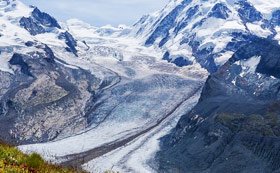 Una significativa quantità d’acqua scorre attraverso un canale verso un bacino di accumulo sotterraneo, da cui, tramite una condotta forzata, discende per alimentare la centrale idroelettrica di Campocologno.